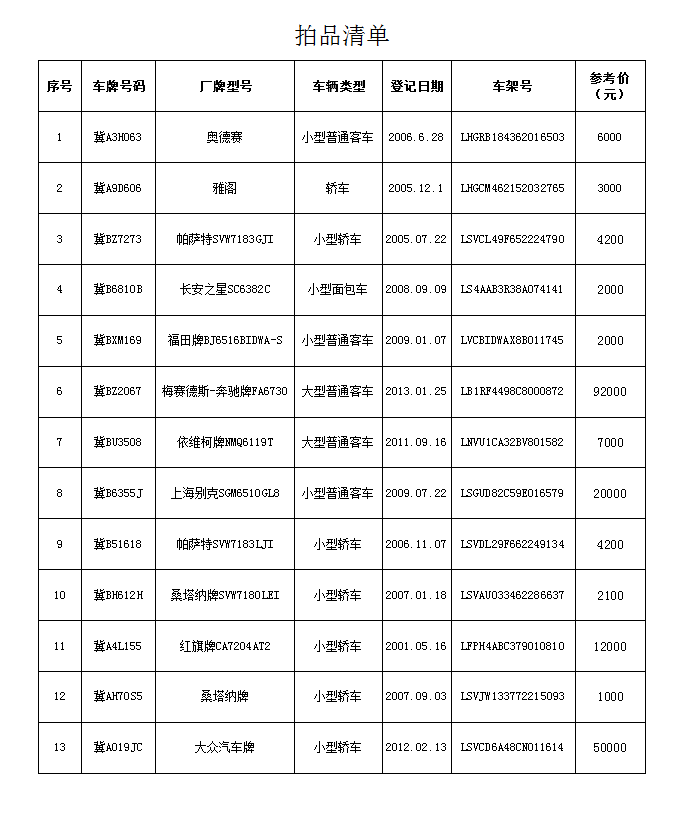 受委托,我公司定于2019年11月14日9:00在石家莊市石清路9號使用網絡電子競價方式公開拍賣舊機動車。本次拍賣競買保證金叁萬元,競買保證金到賬截止時間為2019年11月12日17:00 。